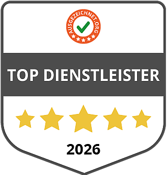 Das Siegel "Top Dienstleister" von ausgezeichnet.org steht für eine besonders hohe Kundenzufriedenheit und geprüfte Servicequalität. Es basiert auf authentischen Bewertungen und schafft Transparenz sowie Vertrauen.