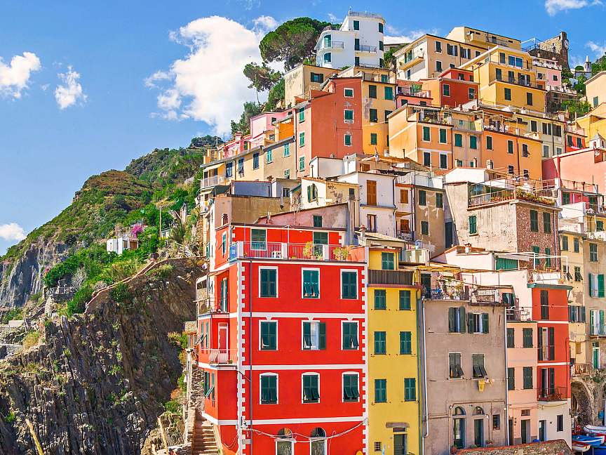 Die 5 Dörfer der Cinque Terre thronen über der Steilküste Linguriens. Bis eine Bahnlinie durch die Berge gebaut wurde, waren die bunten Dörfer früher nur zu Fuß oder per Schiff erreichbar. Genieße den atemberaubenden Ausblick auf die Steilküste und spüre den Charme bei einem Bummel durch die kleinen Gassen.