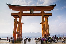 Mit der Fähre geht es zur heiligen Insel Miyajima - bekannt für das berühmte "schwimmende" Torii und die frei herumlaufenden, freundlichen Rehe. Wer mag, kann eine leichte Wanderung rund um den Berg Misen unternehmen. Und vergesst nicht, die frischen Austern zu probieren - eine Spezialität der Region!