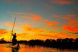 Nachdem ihr einen Teil eures Gepäcks in Maun gelassen habt, startet ihr in Richtung Delta. Nach etwa ein bis zwei Stunden Fahrt erreicht das Dock, wo euer Mokoro, ein traditionelles Einbaum-Kanu bereitliegt. Genießt die Aussicht während ihr immer Tiefer in die WIldnis vordringt. Einige Stunden später erreicht ihr euer Buschlager - mitten im Herzen des Deltas, fernab vom Alltag.
